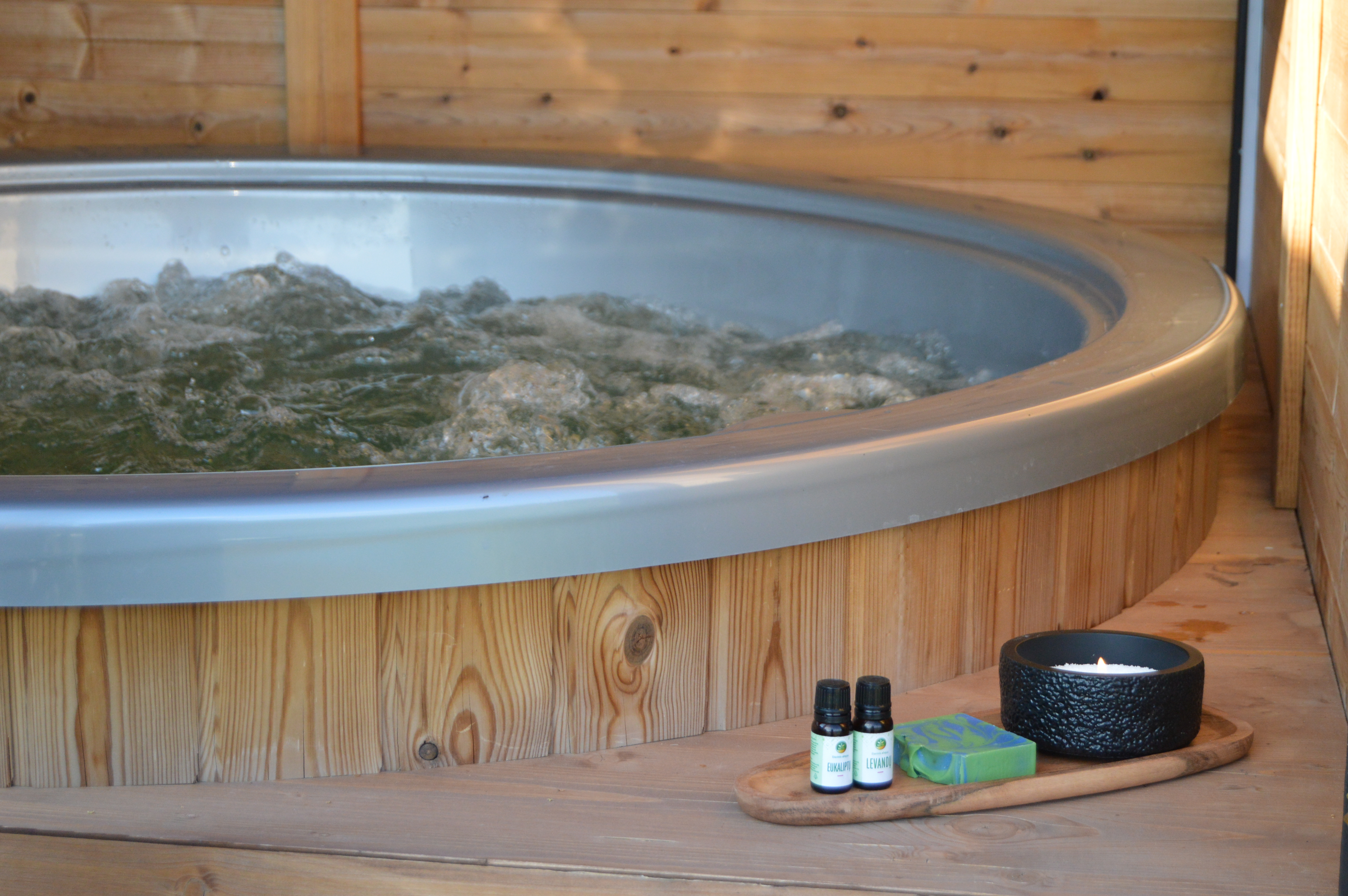 Privati, jauki SPA erdvė – gamtos apsuptyje, su vaizdu į prūdą, mišką. Skirta vakariniam poilsiui iki 6-8 asmenų.