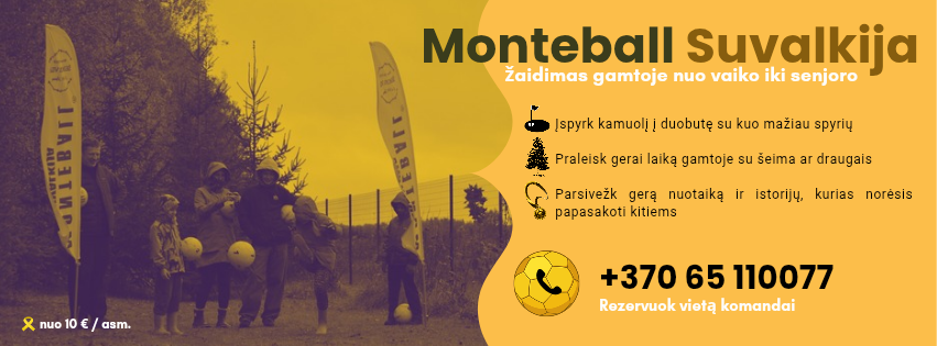 MONTEBALL® – tai originalus, Lietuvoje gimęs komandinis žaidimas, kurį nuo šiol galėsite patirti ir mūsų erdvėje. Aktyvi, įtraukianti, su strategijos prieskoniu – tai puikus būdas pajudėti, pasijuokti ir pabūti gamtoje su bendraminčiais. Žaidimo principas įspirti Monteball kamuolį į parko pievoje įrengtas Monteball duobutes atliekant kuo mažiau spyrių. Kviečiame visus nuo mažiausio iki didžiausio sužaisti šį žaidmą mūsų sodyboje. Tereikia surinkti savo komandą ir rezervuoti datą. Rezervuokite telefonu +37065110077 arba internetu monteball.eu